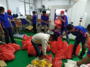 The distribution area covers North Cikarang, South Cikarang, West Cikarang, East Cikarang, Cikarang Baru and Cikarang Pusat which are divided into 5 teams to distribute 100 food packages.